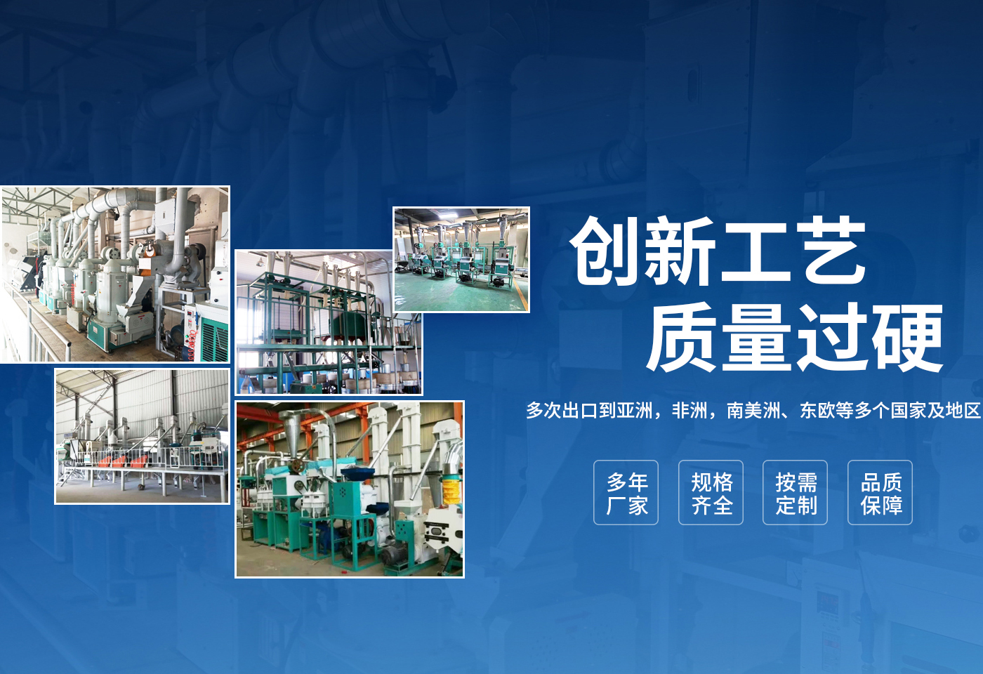 安陽市龍?zhí)┘Z油機械有限公司是一個集糧油機械設計、生產制作、安裝于一體的設備制造商。公司坐落于農業(yè)生產基地河南省安陽市。多年來,公司與科研機構建立了廣泛的技術協(xié)作關系,精心致力于糧食加工設備的技術創(chuàng)新與應用,產品涵蓋整套碾米機械、小麥加工設備、玉米加工設備、雜糧加工設備,飼料加工及油脂設備等多個領域。可承接全套的交鑰匙工程,提供從資金預算,整體規(guī)劃,土建設計,設備制造、安裝、培訓,售后保障等一站式服務。  我公司擁有獨立自主進出口權及產品原產地注冊證書。產品除國內市場外,多次出口到,亞洲,非洲,南美洲、東歐等多個國家及地區(qū)。為國內外多家企業(yè)提供了工藝先進,技術過硬,節(jié)能的糧油設備,深得國內外客戶的一致好評。  公司以“質量就是生命”為宗旨,根據(jù)客戶不同需求,采用合理的技術方案,為客戶量身打造投資建廠方略,爭取實現(xiàn)高收益。公司生產過程嚴格按照合同和圖紙設計要求,生產符合設計標準、檢測標準、質量優(yōu)良的產品供給客戶,并提供安裝、調試、培訓,保修期免費維修,終身免費咨詢等服務,確保設備在長期使用中穩(wěn)定運行。  龍?zhí)?愿與您一起攜手共創(chuàng)輝煌!